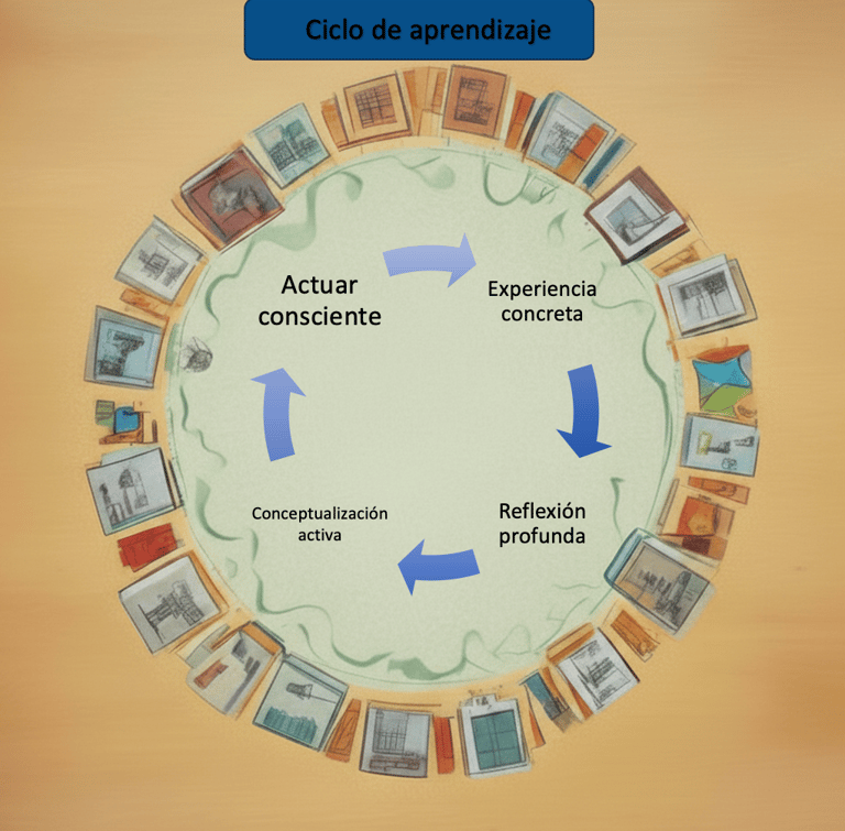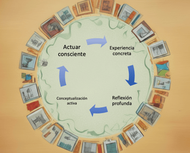 En Kairós Consutorías creemos que el aprendizaje significativo ocurre cuando las personas se involucran activamente en su proceso de desarrollo. Por eso, nuestra metodología se inspira en el modelo de aprendizaje experiencial de David Kolb, que propone un ciclo dinámico de cuatro etapas. Adaptamos este modelo para generar experiencias transformadoras, integrando reflexión, acción y propósito.